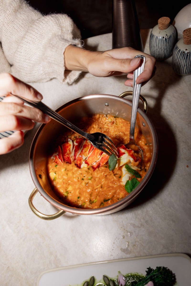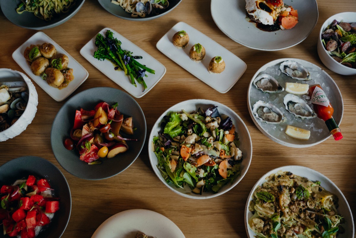 It runs all day: breakfast from 7:30am, an all-day menu from noon, and dinner service from 7pm. The cuisine is a contemporary take on coastal Portuguese cooking. Produce is seasonal, with seafood arriving daily from Peniche Harbour and vegetables from local farms. The menu is designed for sharing and changes with what is available. Dishes to look for: oysters with ponzu sauce, grilled carabineiros with ponzu mayo, charcoal-grilled turbot. The cooking moves between Mediterranean and something more contemporary without losing its bearings.