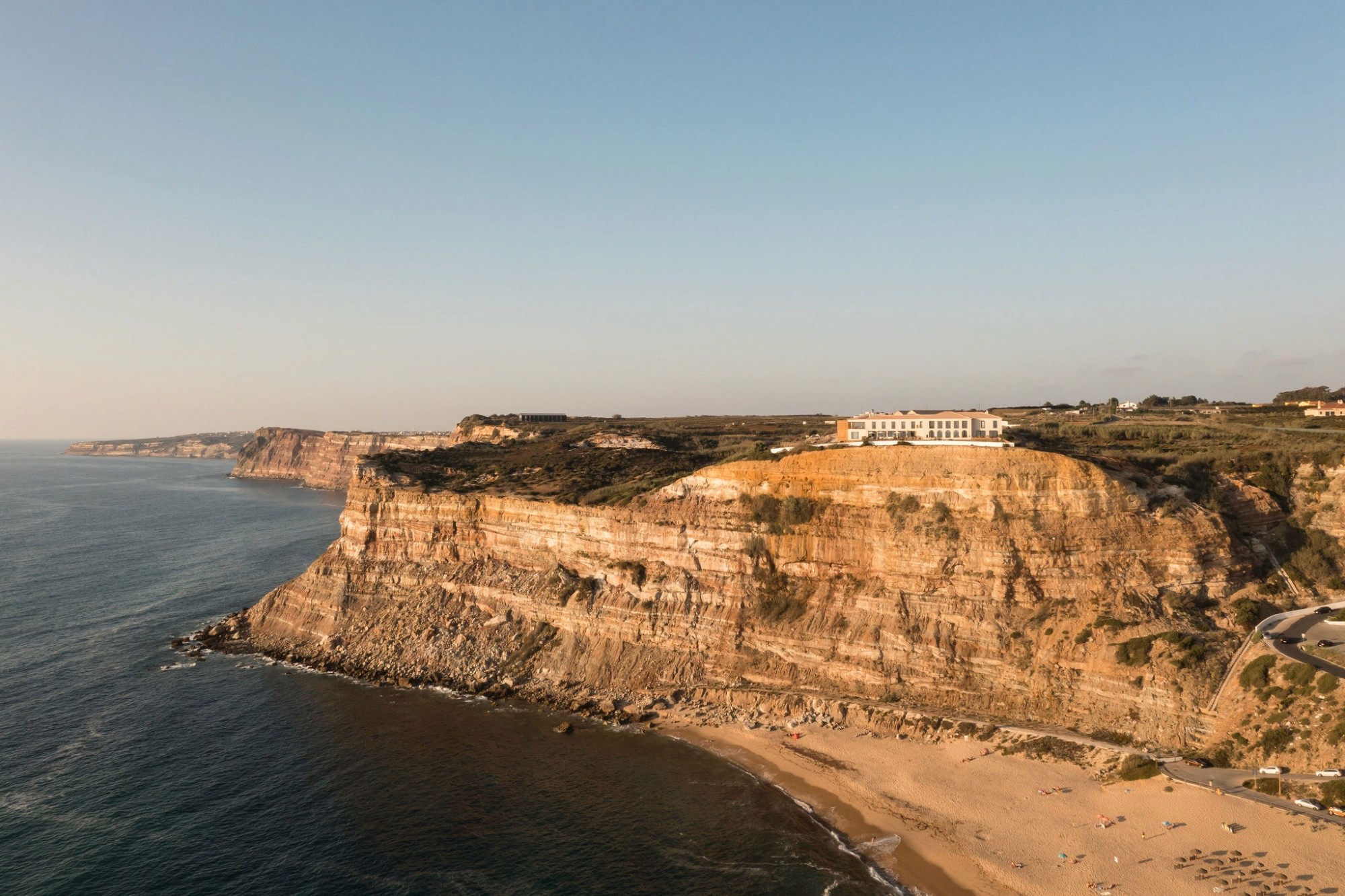 Aethos Ericeira dominates the cliff above Praia da Calada, surrounded by fields and Atlantic views. This is the edge of the first World Surfing Reserve in Europe. Five kilometres of protected coastline, consistent Atlantic swell, and breaks for every level. Less than 45 minutes away from Lisbon airport, yet feeling far more remote.