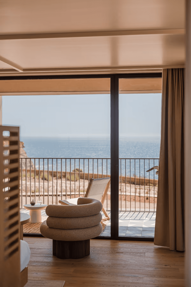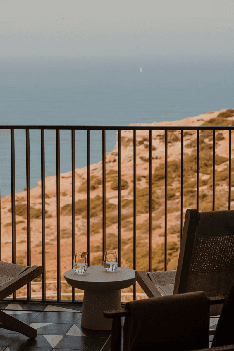 In 2018, the pair found the cliff-top property derelict, a concrete block untouched for over a decade, and immediately saw its potential. The transformation was a collaboration. Luís Pedra Silva reworked the farm buildings, preserving the original arches while reshaping the structure towards the sea. Astet Studio, led by Ala Zureikat and Óscar Engroba, directed interiors.