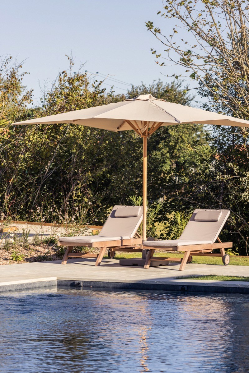 Biarritz-based architect Delphine Carrère handled the renovation. She worked with the existing structure, adding cream tones, clean lines and designer furniture without softening the building's essential character. A heated 20-metre pool, a fireplace lounge, a bright dining room, a sunlit terrace facing the mountains. Each space feels rooted in the Basque hills, avoiding both cliché and cold modernism.