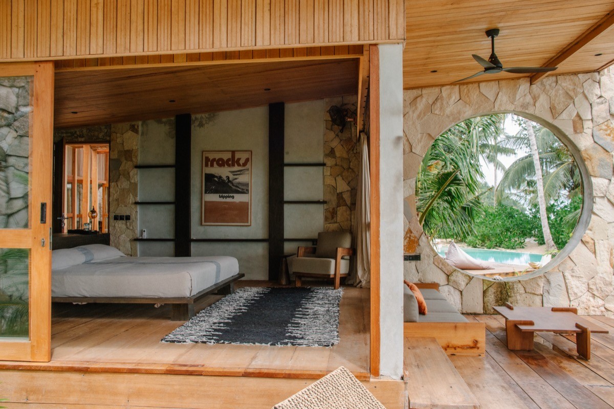 La Isla is the project of three partners: Javier Castro, a Peruvian surfer, and Nacho Atienza and Bea Alejandre, the Spanish couple behind Biombo Architects. The trio spent years scouting islands before choosing Potoutogat for its access to the Mentawai line-up. Building somewhere this remote tested everyone involved.