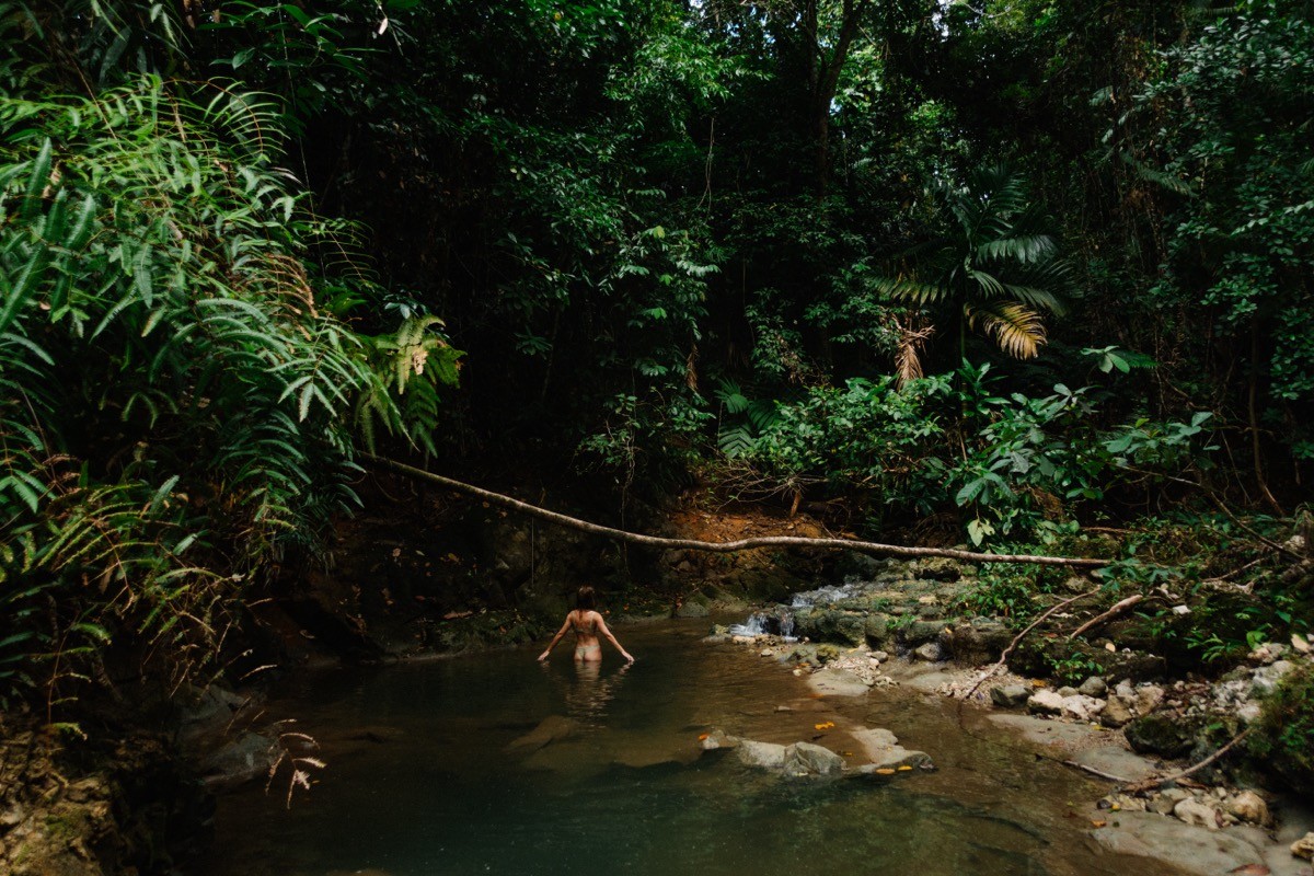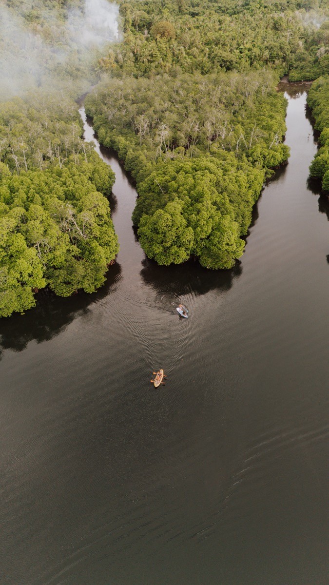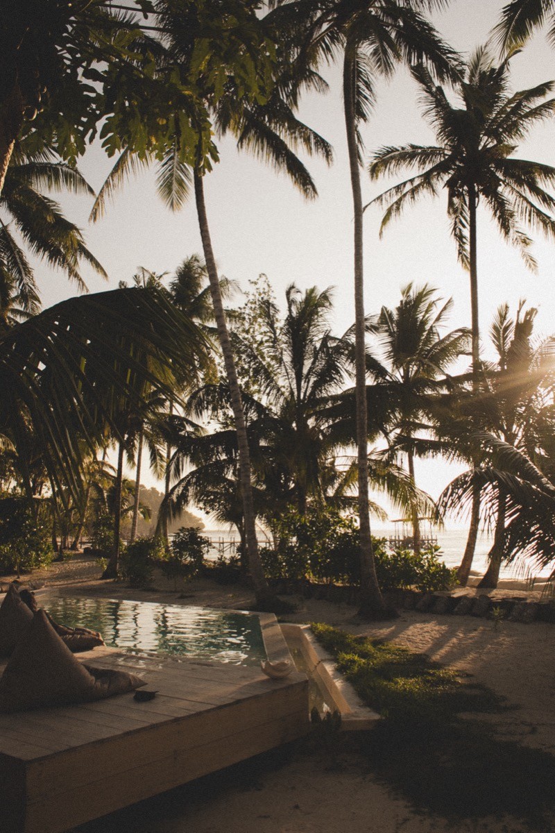 Between sessions, the island opens up. Paddle a kayak or SUP through mangroves. Take a snorkelling trip over the reefs around Potoutogat. Go beach hopping by boat, or disappear inland to freshwater jungle pools. Fishing trips are available too; bring back something decent and the chef will handle the rest.