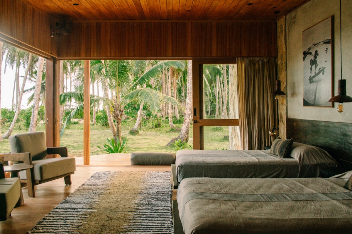 Single Fins have proper king-size beds (2m x 2m). Twin Fins have two generous singles (1.2m x 2m) that convert to a king, with an optional third bed for families. Each villa has a desk and Starlink Wi-Fi (if you must), along with air conditioning and hot water. But the rooms are designed to pull you outward, not in.