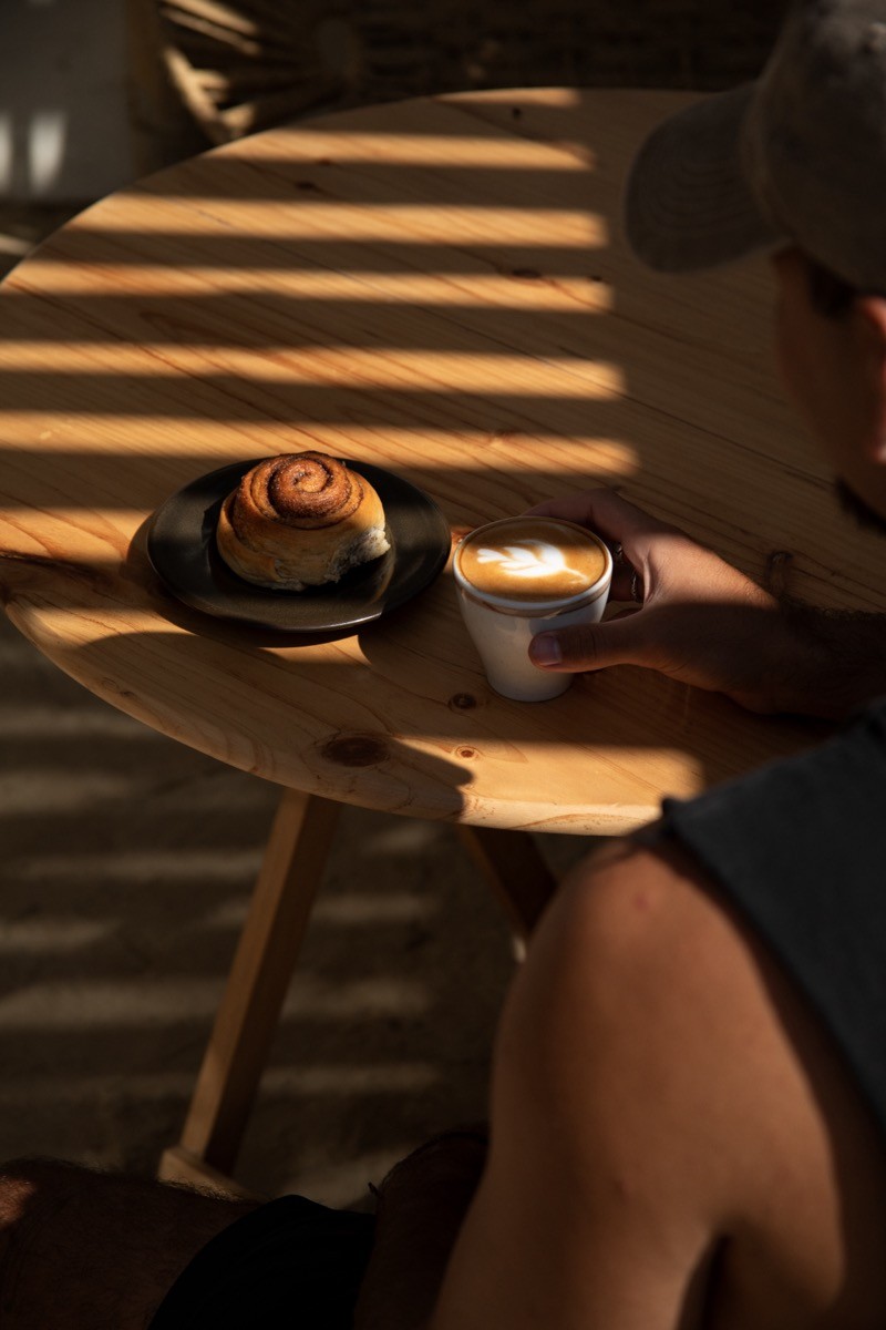 La Onza Café keeps its menu short and focused: avocado toasts, smoothie bowls, the best waffles in town. The coffee is proper Peruvian, from a single Cusco estate that's been growing beans for fifty years. Baked goods come from the community: homemade bread from Moisés, banana bread from Loana, cakes from Juan Diego, cheesecake from Emma. Afternoons often find guests nursing flat whites, sandy-haired and lightly sunburnt. By sunset the espresso machine quiets, and wine appears.