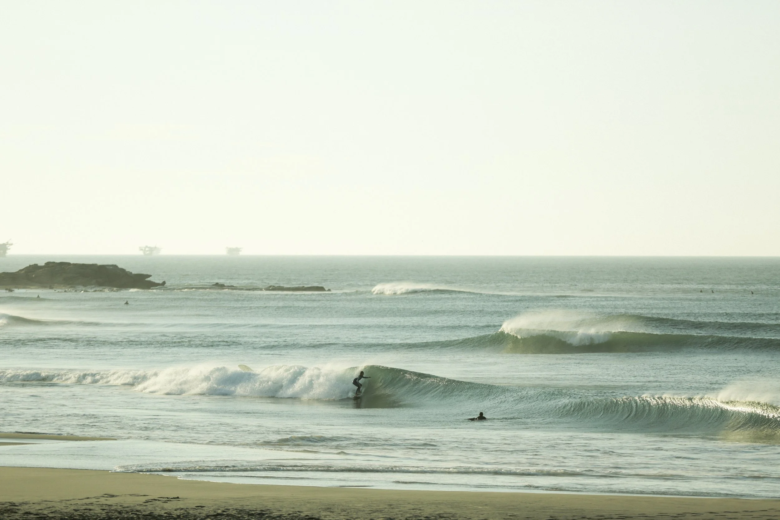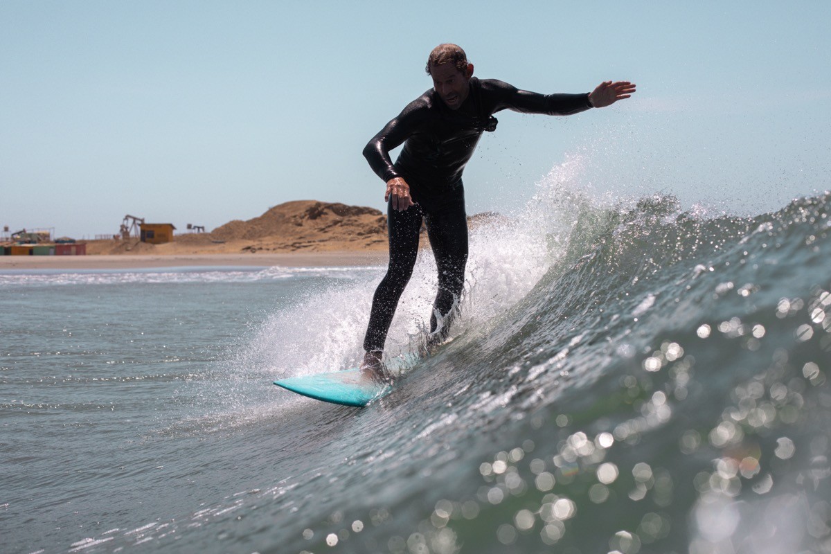 The scenery is striking: rusting oil derricks on the cliffs, desert meeting ocean, uncrowded waves. Northern Peru is the land of the lefts. It picks up both north and south swells, making Lobitos remarkably consistent year-round.