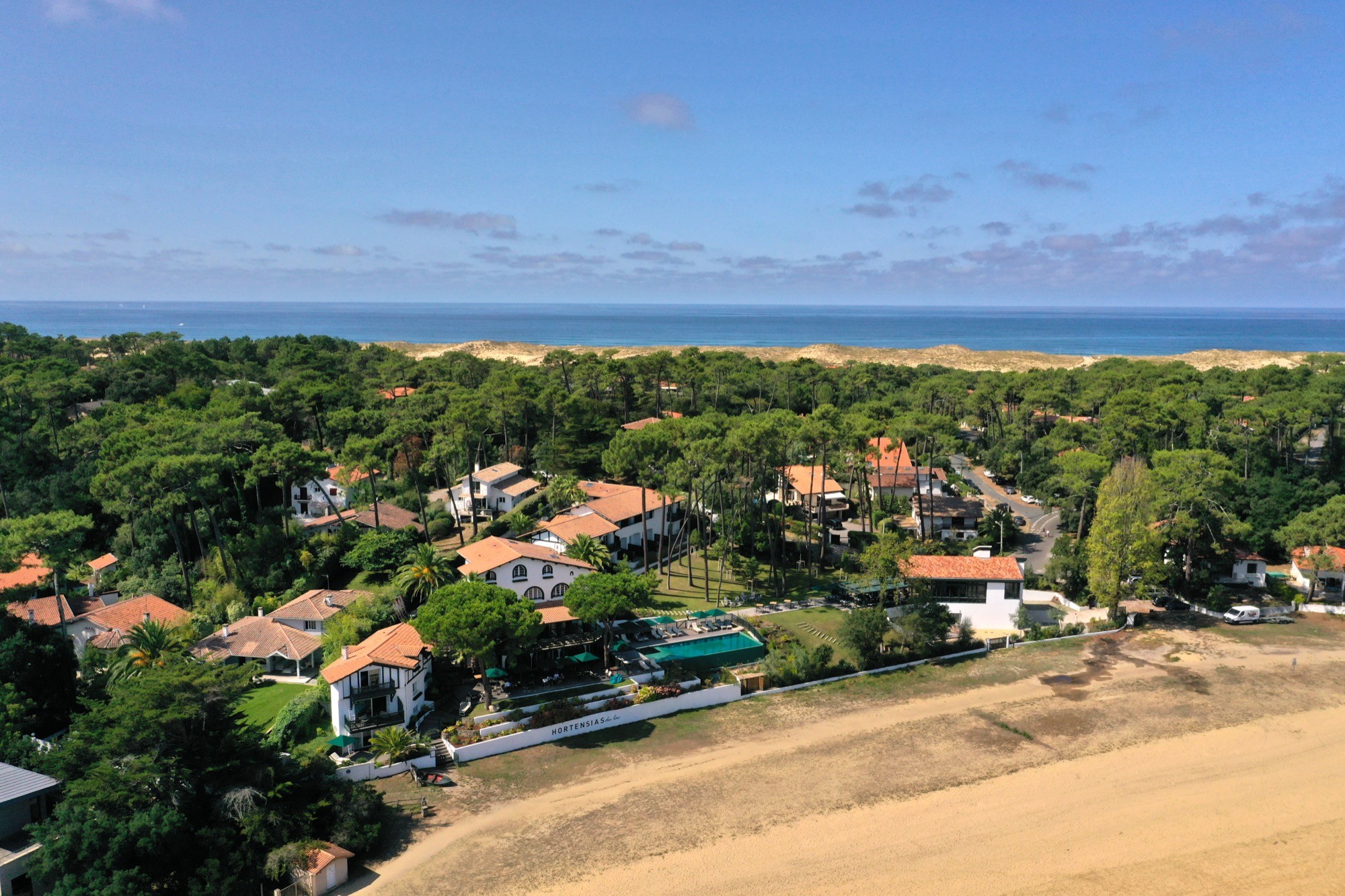 Hossegor has a split personality. On one side, powerful Atlantic breaks that made the town one of Europe’s surf capitals. On the other, just behind the dunes, a marine lake at the edge of the Landes pine forest. Les Hortensias du Lac is built around that contrast: ocean energy, lake recovery.
